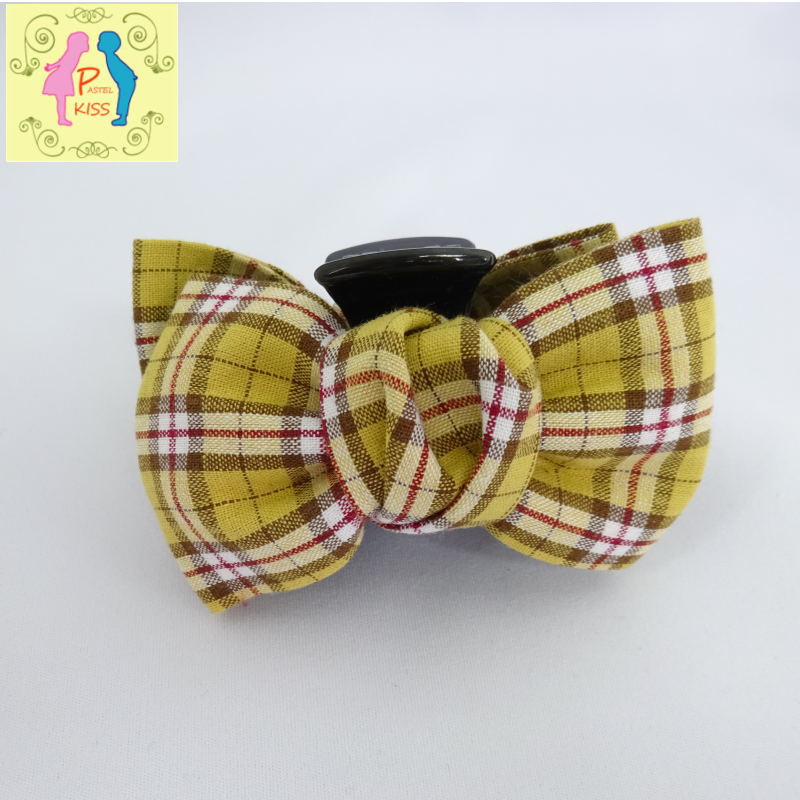 1000円 送料無料 ポッキリ ヘアーアクセサリー クリップ リボン イエロー チェック柄